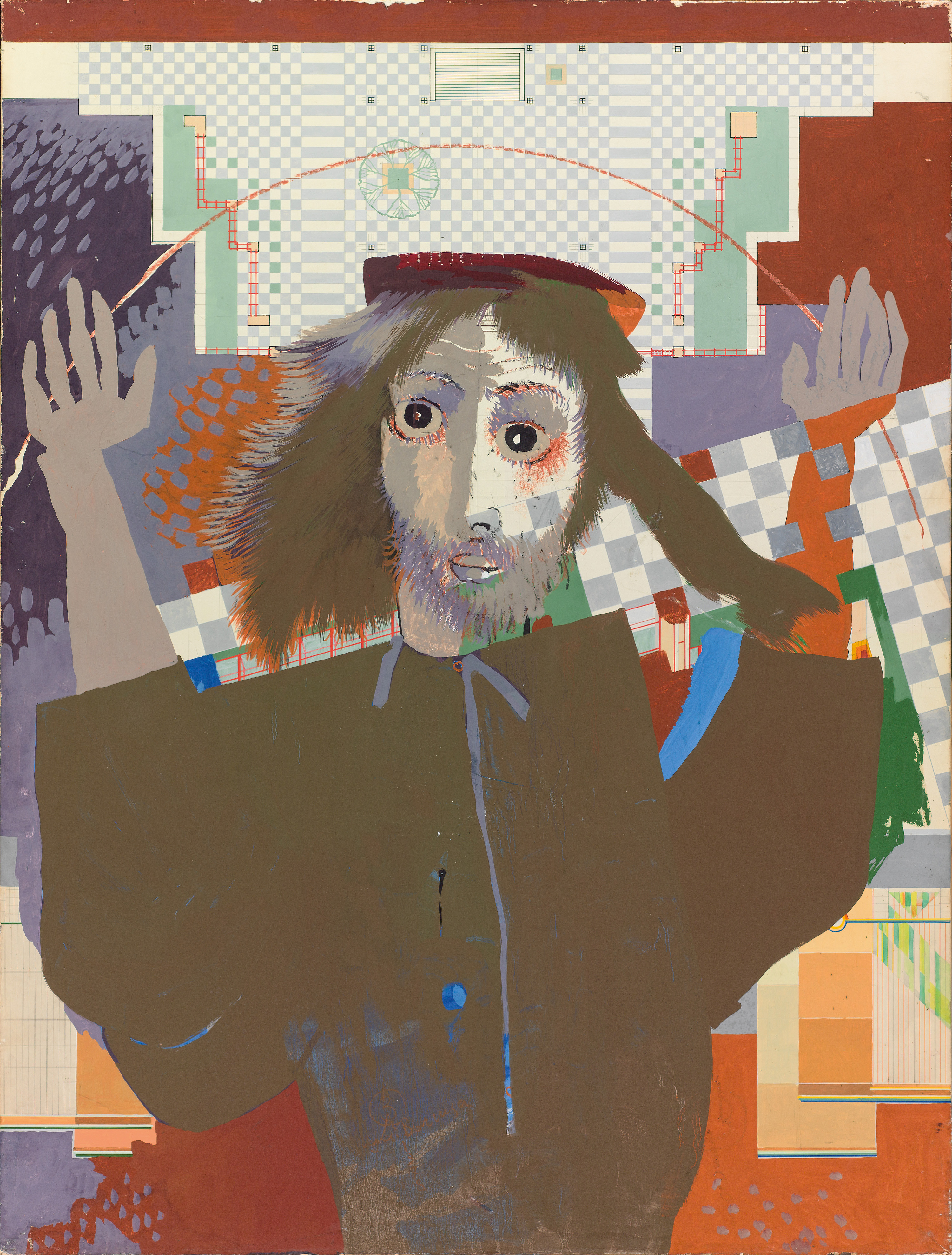 plywood, paper, tempera
