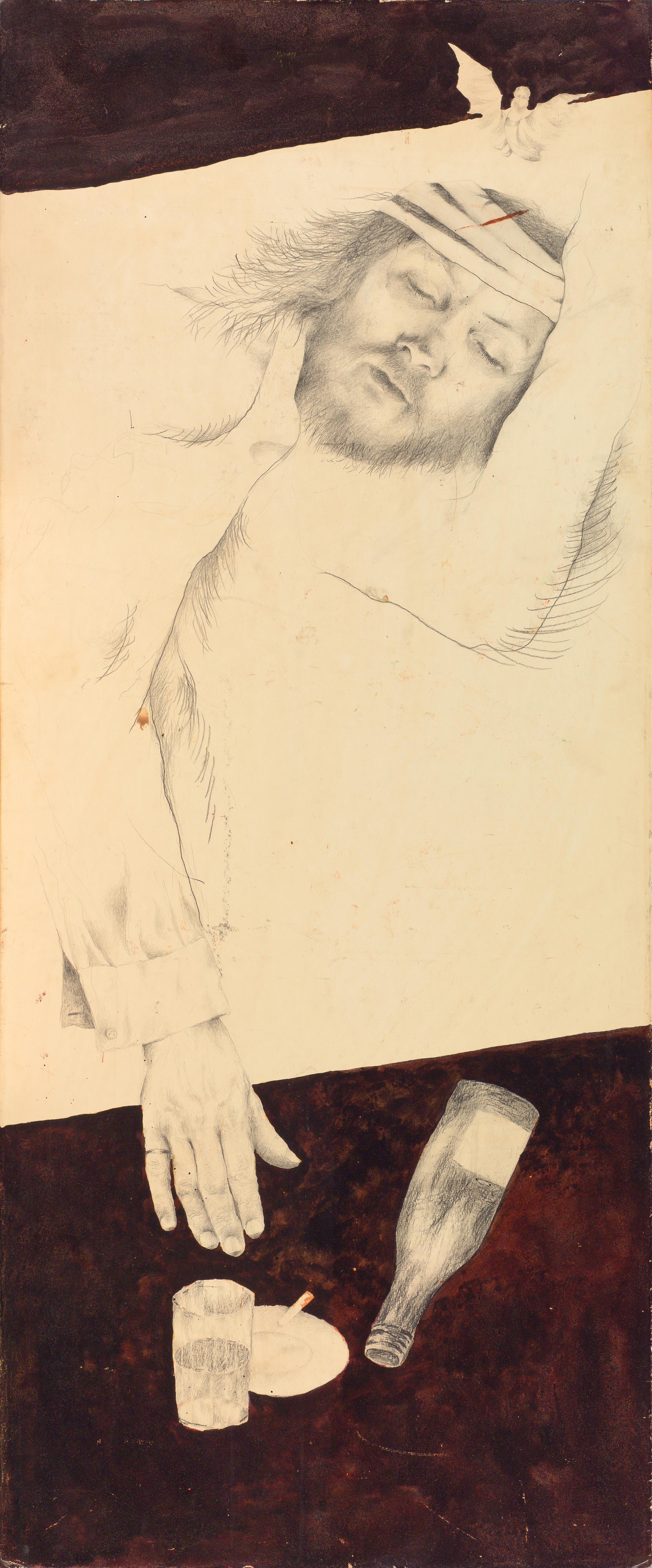 primed cardboard, pencil, tempera, pastels