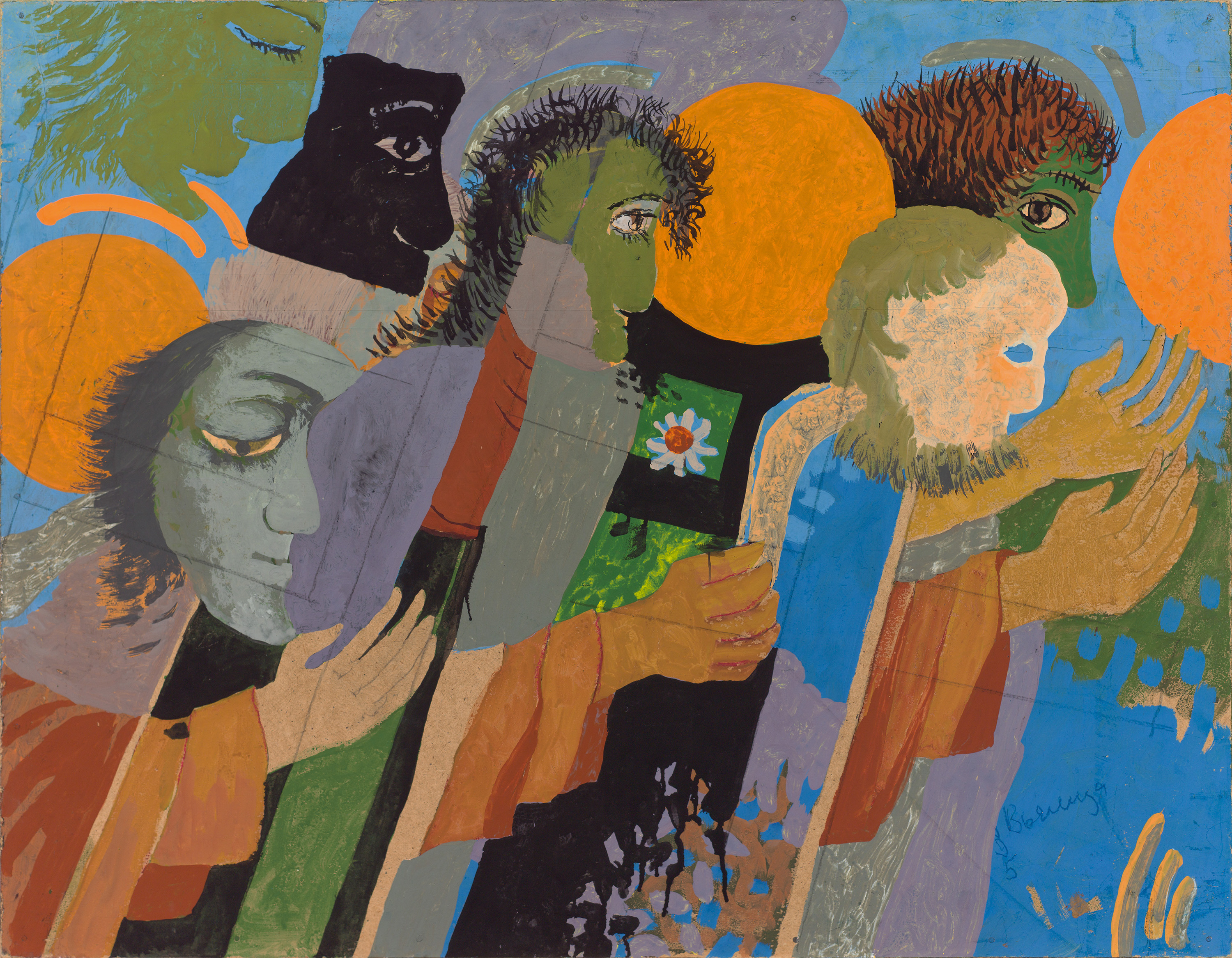 paper, plywood, tempera