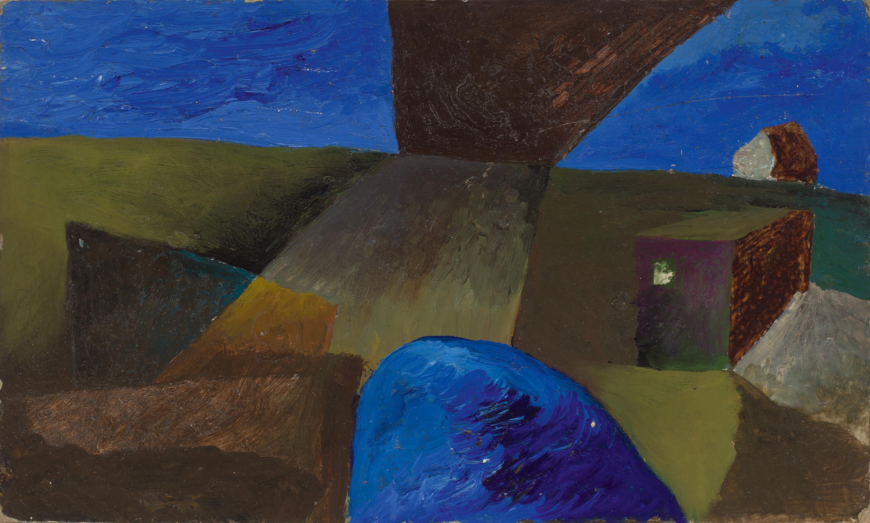 primed cardboard, oil